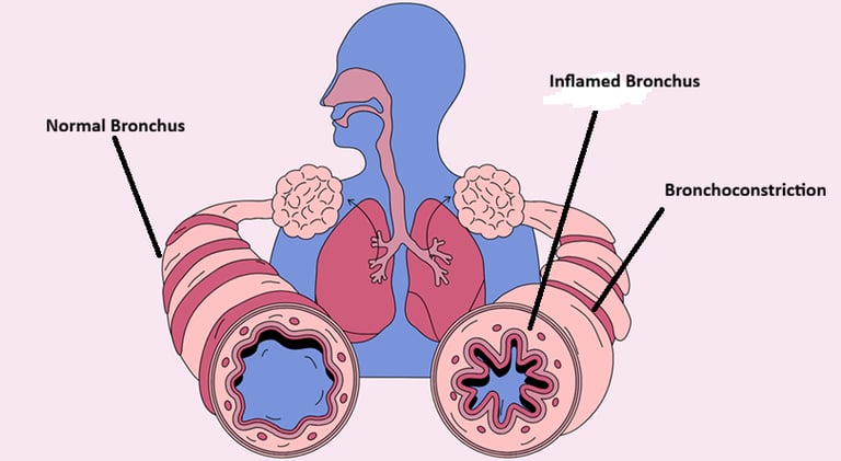 Reversible bronchoconstriction (narrowing of airways)