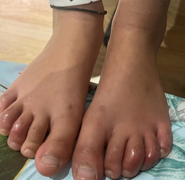 are a common skin condition characterized by the development of small, itchy, and painful red bumps on the extremities, such as the toes, fingers, ears, and nose. These lesions are usually caused by the body's abnormal response to cold temperatures, leading to poor circulation and inflammation in the affected areas. Chilblains typically occur in individuals with poor circulation, such as those with Raynaud's disease or those exposed to extreme cold without proper protection. Symptoms include redness, swelling, itching, and a burning sensation. While chilblains usually resolve on their own within a few weeks, they can be prevented by keeping the affected areas warm, avoiding sudden temperature changes, and wearing appropriate clothing in cold weather. In severe cases, medical treatment may be necessary to relieve symptoms and prevent complications.